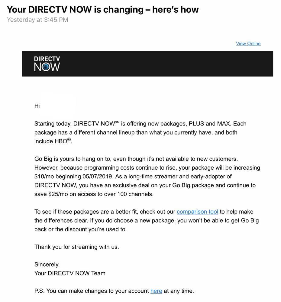 Directv Now Has Started To Notify Current Customers Of A 10 Price Hike 10 Hbo Price Hike Cord Cutters News